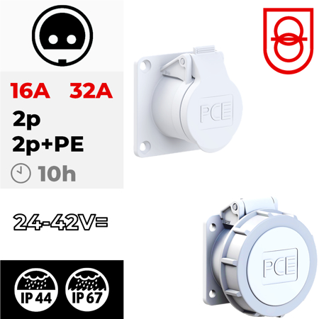 Picture of Tomada encastrar fêmea IP67 32A 2P+T 24/42Vdc 10h