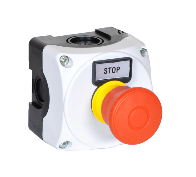 Caixa botoneira Branca c/ botão emergência LPC6744+etiqueta STOP