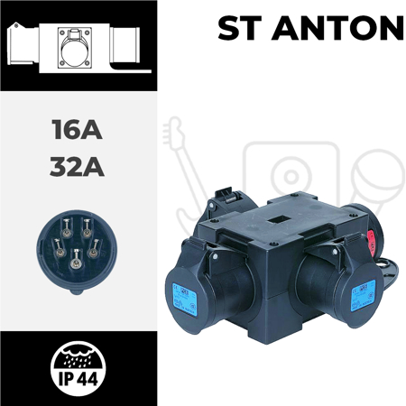 Adaptador macho 5P 16A + 2x fêmea 3P 16A IP44