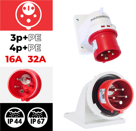 Tomada encastrar macho c/ inversor de fases angular IP67 32A 3P+T+N 400V