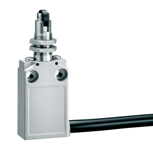 Fim-de-curso metálico 1NA+1NF ruptura brusca rolete plástico cabeça extendida M12