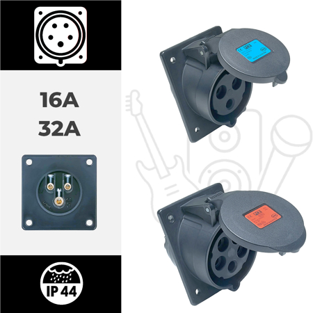 Tomada encastrar fêmea inclinada IP44 32A 3P+T+N 400V