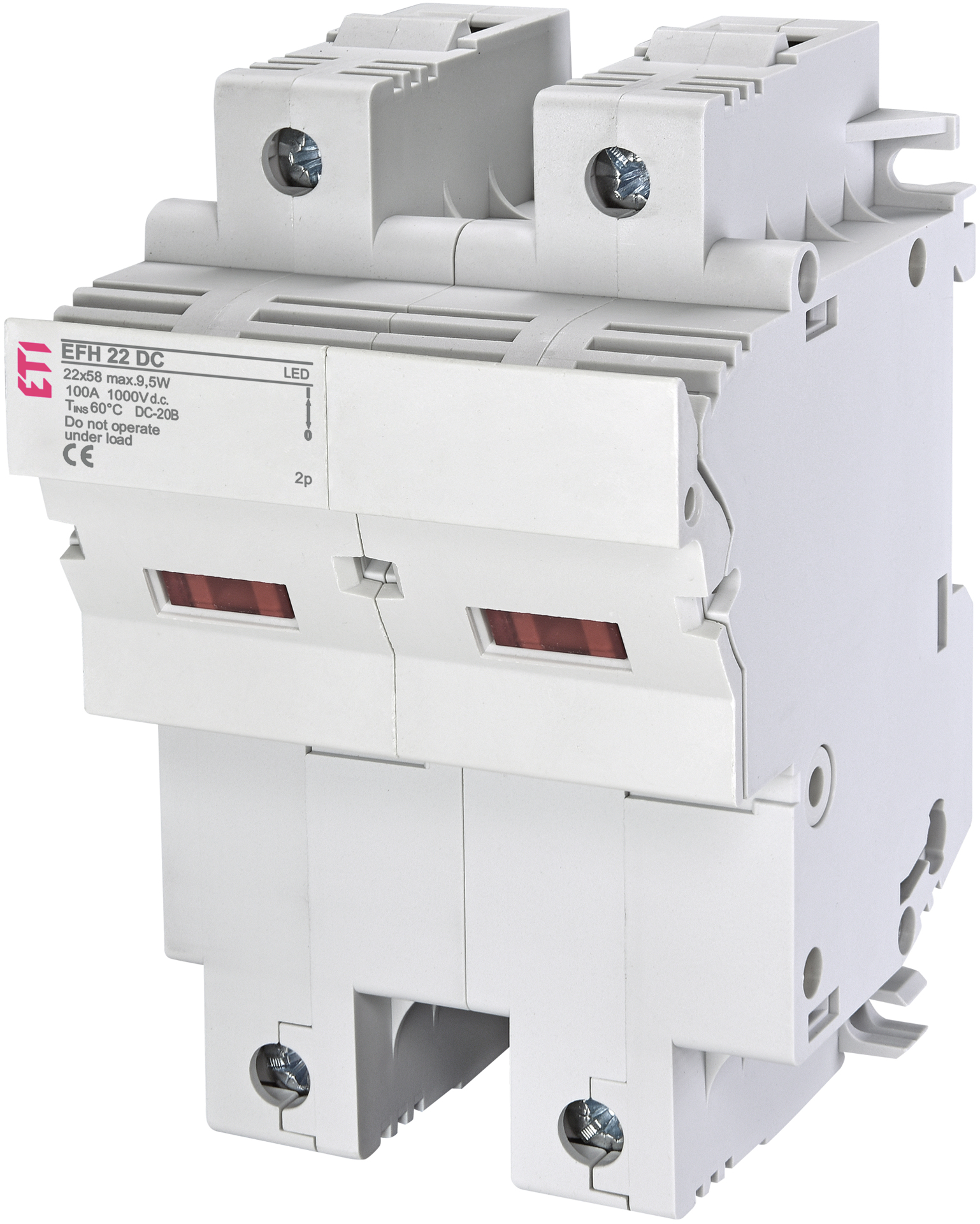 Seccionador de fusíveis 22x58 2P 1000Vdc c/ led (máx 100A)