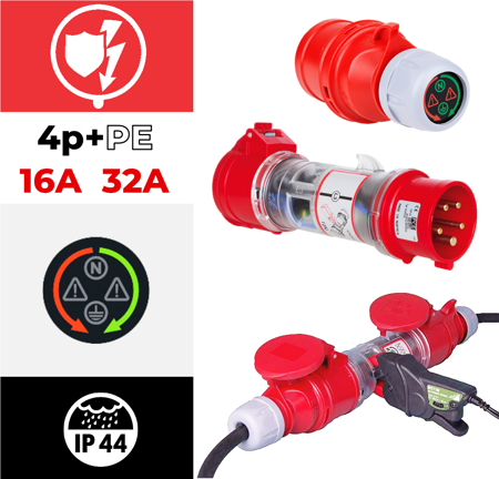 Ficha de diagnóstico c/ display LED IP44 32A 3P+T+N 400V